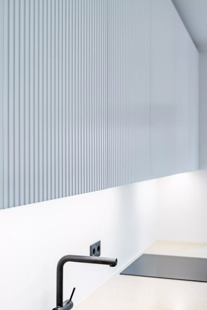 - Кухонные шкафы: Egger меламин, рифлёный крашеный МДФ, стекло